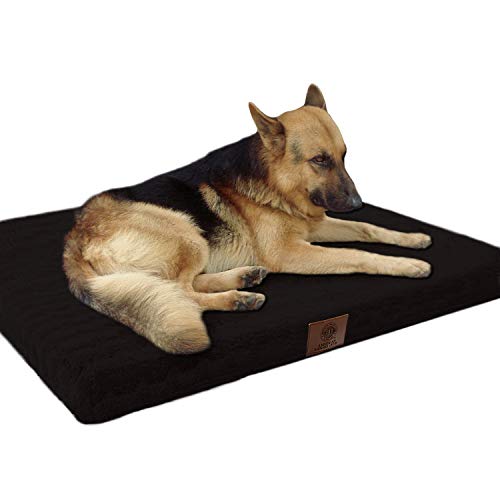 This large pet bed from Trademark GLB comes in a variety of sizes, and colors that are sure to work for your beloved pet. It is made with a duplex foam construction and features non-skid backing that helps keep the bed in place. It is made of a safe and non-toxic memory foam that is perfect for dogs who need a little extra orthopedic support when they rest.